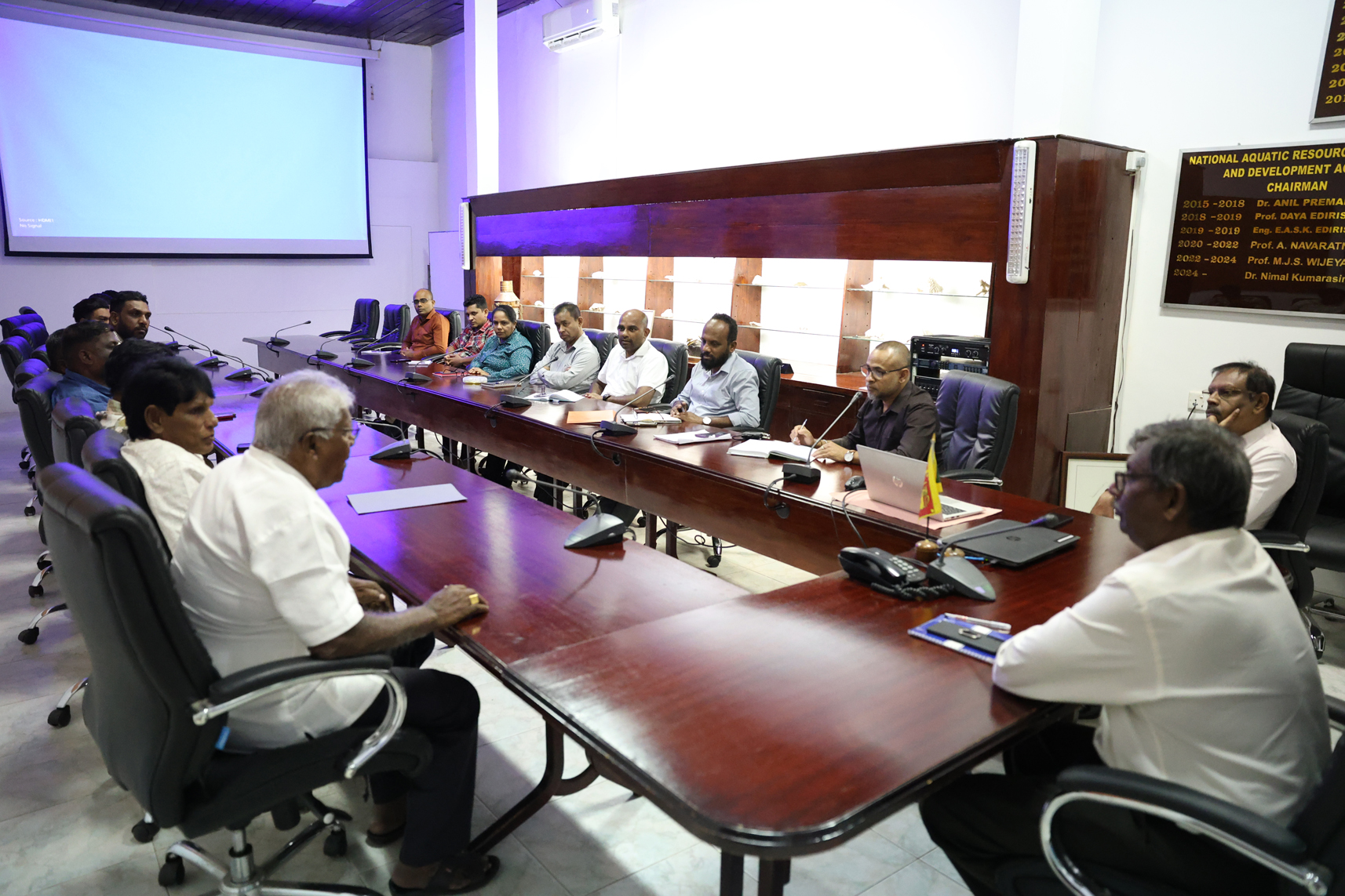 A technical discussion was conducted on 13th March, 2024 at the NARA boardroom with Scientists from the First Institute of Oceanography (FIO), The Republic of China (ROC), and the Scientists of NARA lead by Dr. Nimal Kumarasinghe, Chairman of NARA. During the session, there were several presentations given by both NARA and FIO scientists regarding the global challenges that are currently being faced. These presentations provided valuable insights and information that will aid in the ongoing efforts to address these challenges.